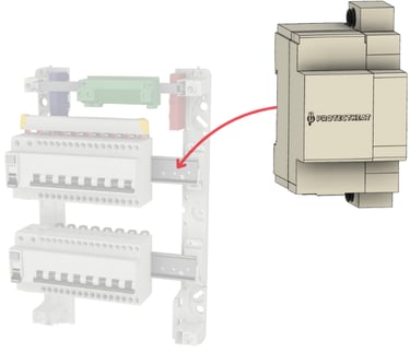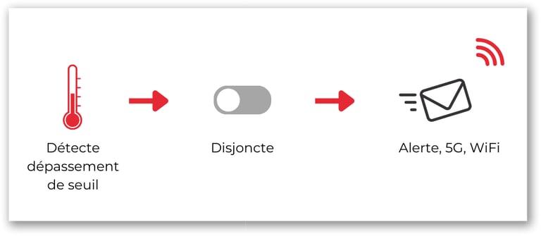 ProtectHeat est un boîtier compact intégrable aux tableaux électriques. Il détecte la surchauffe des fils, disjoncte automatiquement avant le départ de feu et alerte.
